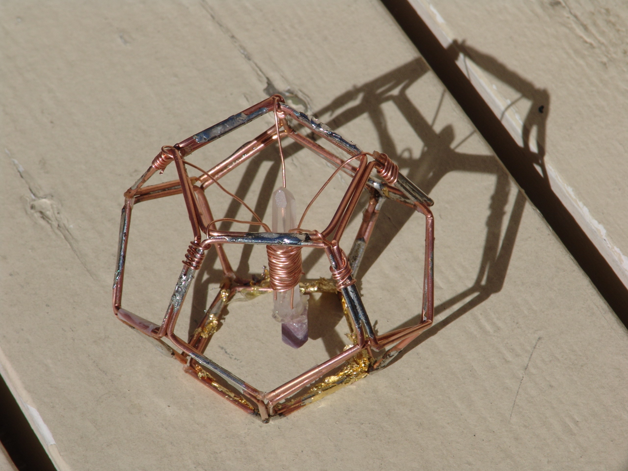 The Standard size Dodecahedron HHG Combiing Mark's excellent dodecahedon and silver soldered at each point, we add a suspended lemurian seed